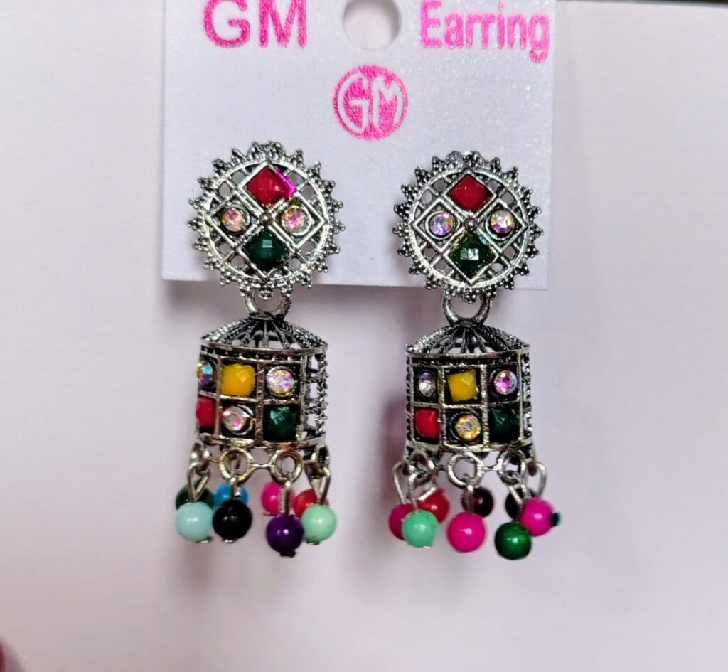 Oxidized Silver Plated Multicolor Jhumka Earrings for Women & Girls