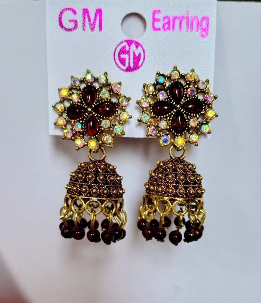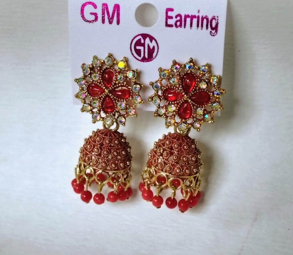 Add a touch of elegance to your ethnic look with these beautifully crafted red stone jhumka earrings. Designed with intricate floral patterns on the stud and detailed jhumka danglers, these earrings perfectly combine traditional charm with festive glamour. Ideal for weddings, parties, and festive occasions, they pair effortlessly with sarees, lehengas, and salwar suits.