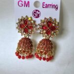 1 review for Red Stone Studded Floral Jhumka Earrings with Beads